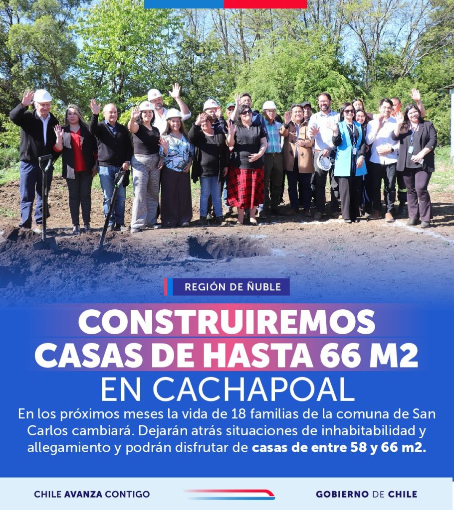18 familias de Cachapoal pusieron la primera piedra de sus nuevas viviendas en San Carlos, Ñuble