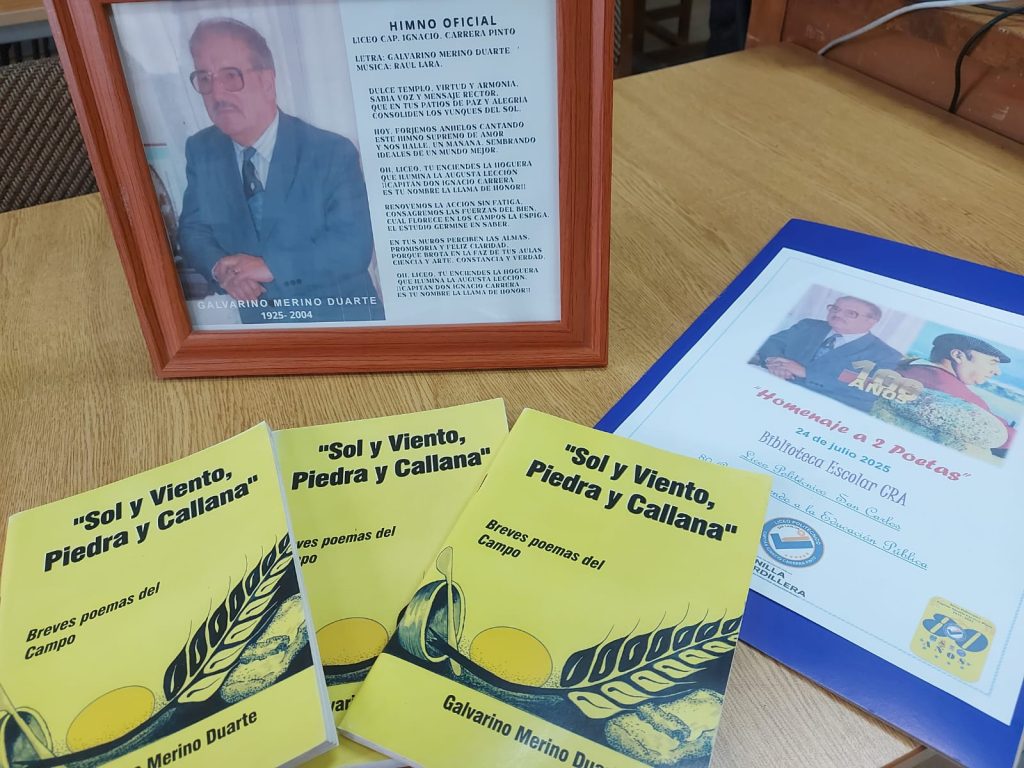 Con un significativo acto cultural, el Liceo Politécnico Capitán Ignacio Carrera Pinto de San Carlos conmemoró el legado de dos grandes poetas: Galvarino Merino Duarte, al cumplirse 100 años de su natalicio, y Pablo Neruda, a 121 años de su nacimiento.