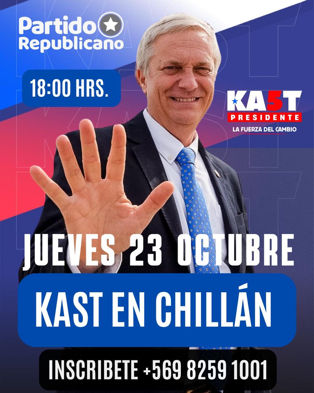 José Antonio Kast visitará Chillán este jueves 23 de octubre en encuentro con vecinos de Ñuble