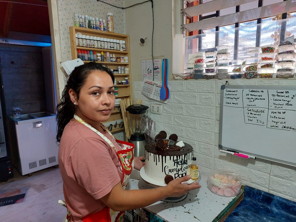 Uno de estos casos es el de Alejandra Muñoz, vecina de la comuna de San Carlos, quien hace dos años decidió invertir sus ahorros para iniciar un emprendimiento de repostería, el que hoy constituye su único sustento familiar. Su pastelería creativa ha sido valorada por sus clientes, generando una alta demanda de pedidos.
