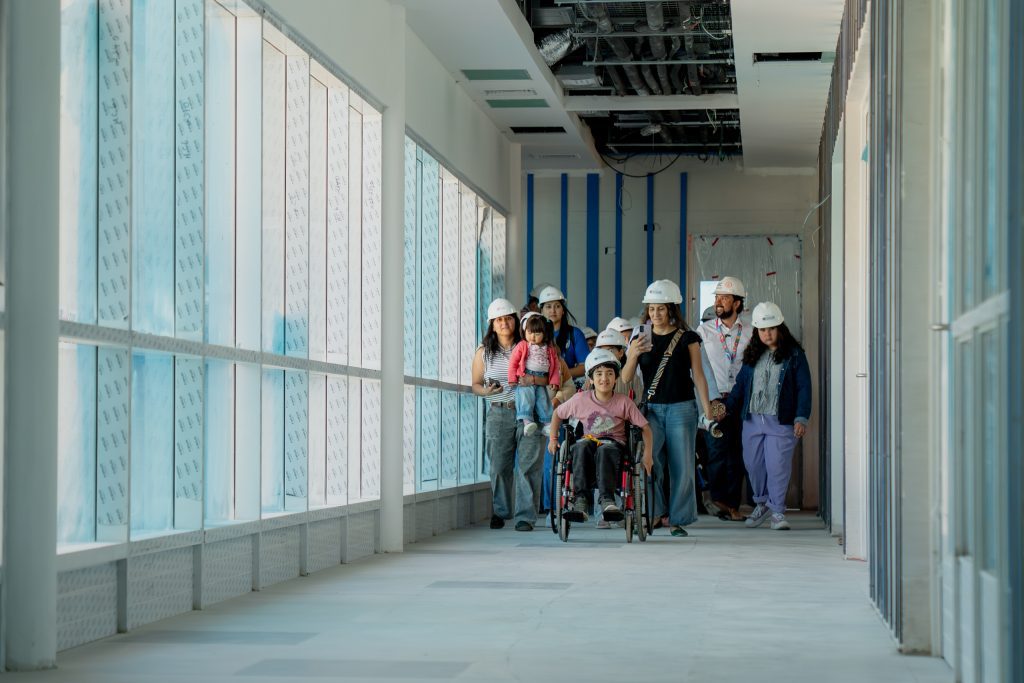 Durante el recorrido, las familias conocieron los casi 4.000 metros cuadrados que tendrá este moderno centro de rehabilitación. La construcción incluye estacionamientos subterráneos, auditorio, bodegas, áreas de terapia ocupacional, gimnasio, boxes médicos, cafetería, casino y salas de estar. También contempla un patio con juegos inclusivos y multicancha, pensado para apoyar la autonomía y el desarrollo integral de los usuarios.