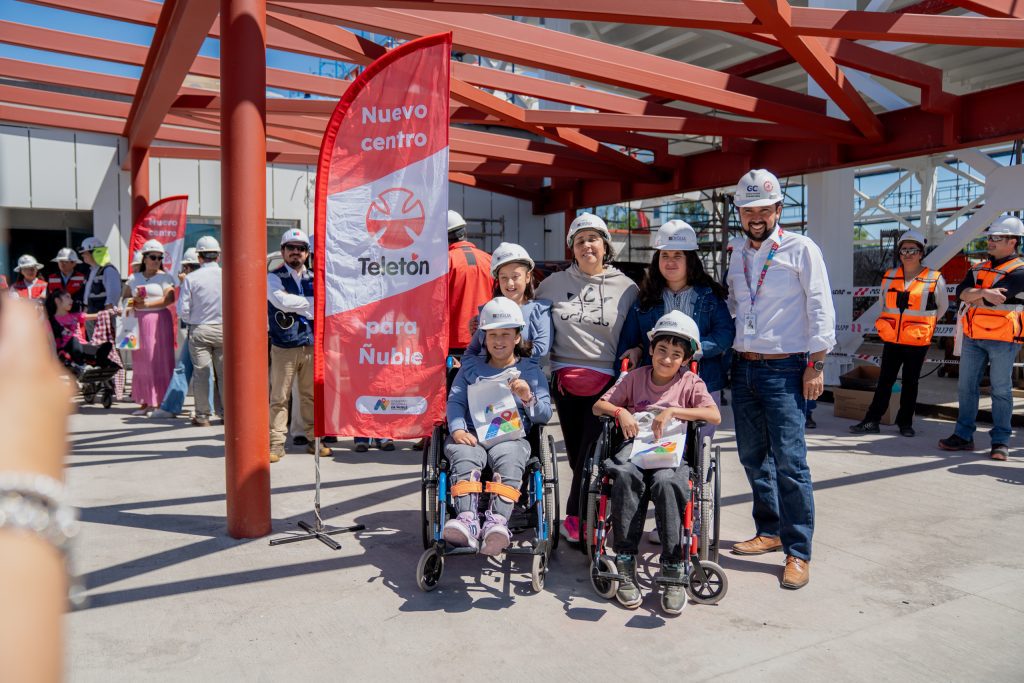 Un grupo de niños, niñas, jóvenes y sus familias visitaron las obras del nuevo Instituto Teletón de Ñuble, que actualmente presenta un 63% de avance. Se trata de una obra financiada completamente por el Gobierno Regional, que beneficiará a más de 800 familias y terminará con los desgastantes viajes a Concepción y Talca que hoy deben realizar para recibir atención.