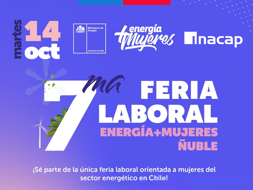Este martes 14 de octubre se realizará por primera vez en Ñuble la Feria Laboral Energía+Mujeres, evento que busca abrir espacios de desarrollo profesional y laboral para mujeres en la industria energética. La actividad se desarrollará desde las 9 de la mañana en la sede de Inacap Chillán y es abierta al público, aunque las interesadas pueden inscribirse previamente en https://tinyurl.com/4xc2bh49