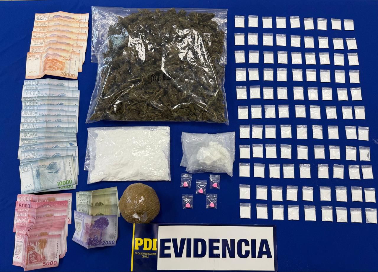 Durante el procedimiento, realizado en varios domicilios vinculados al grupo delictual, la PDI incautó 650 gramos de clorhidrato de cocaína, 410 gramos de cannabis sativa y 5 dosis de ketamina, sustancias avaluadas en cerca de 8,5 millones de pesos.